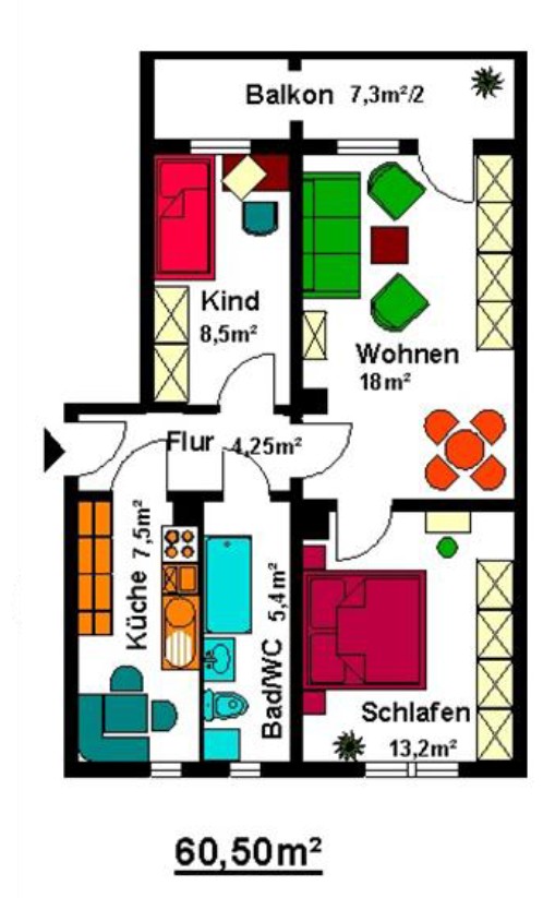 | Wohnungstyp: | 3-Raum-Wohnung mit verglastem Balkon |